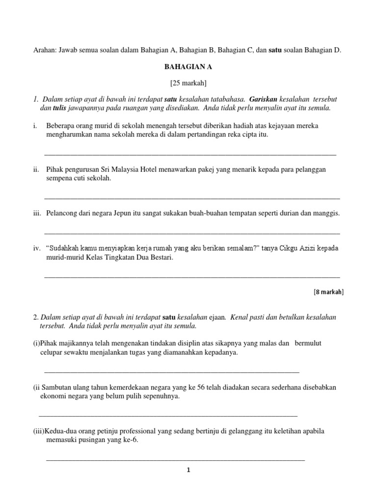 Contoh Soalan Peperiksaan Bahasa Melayu Spm Kertas 2